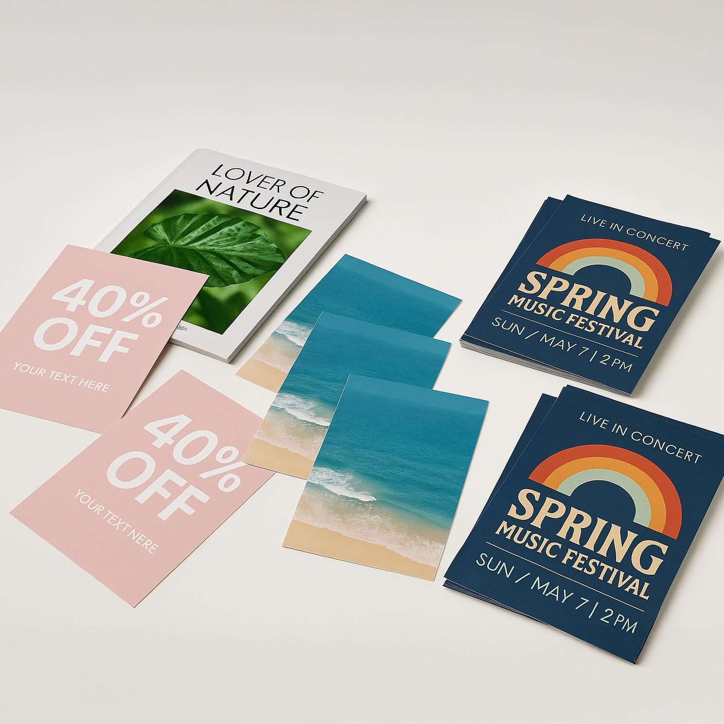High-quality full-colour flyers and leaflets, perfect for promoting your business, event, or special offers. Available in a range of sizes, paper stocks, and finishes. Single or double-sided printing. Fast turnaround and competitive prices.